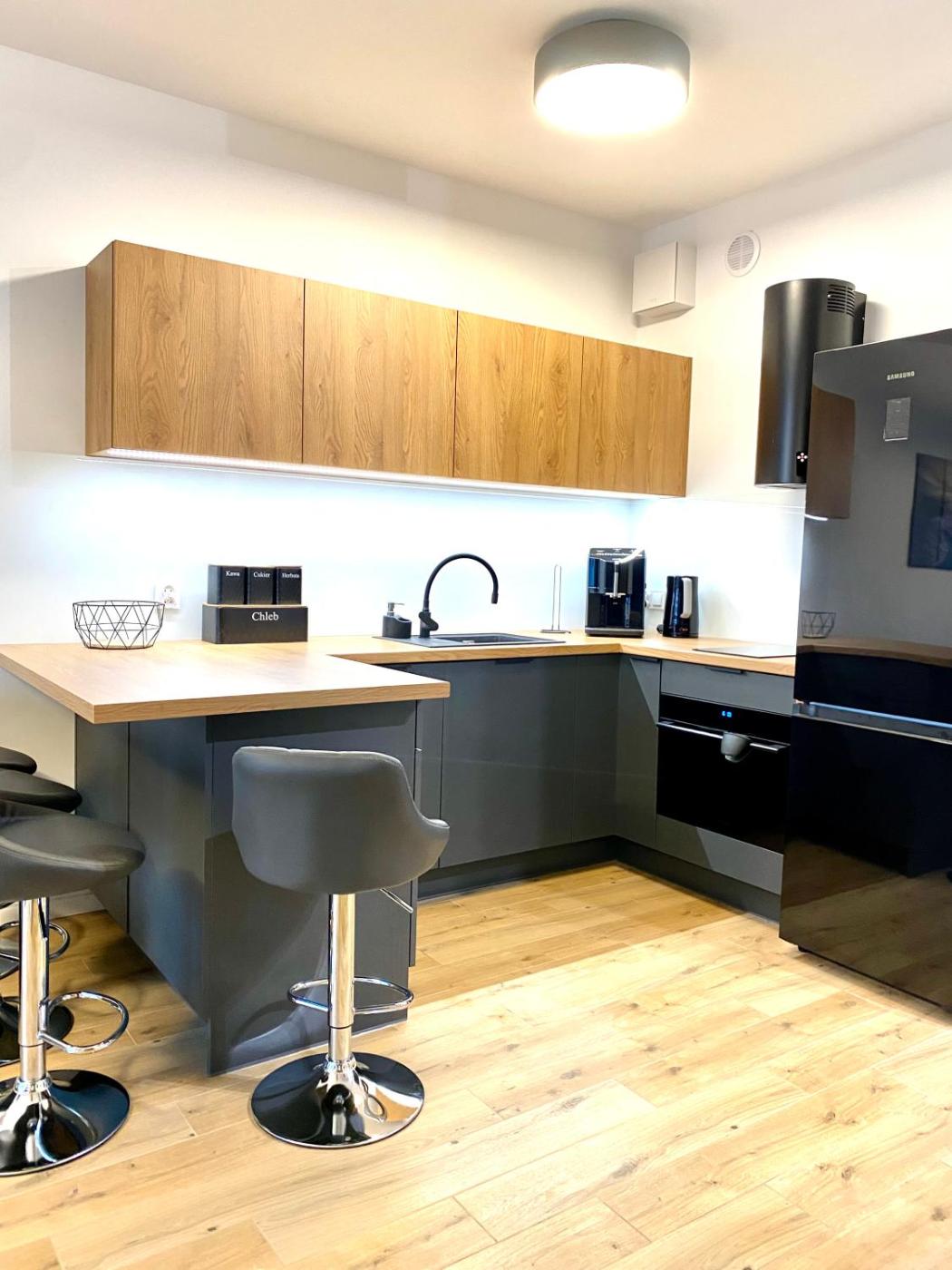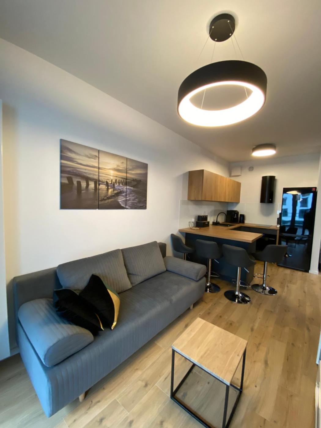 Oferta apartamentu obejmuje sypialnię (1), salon, aneks kuchenny z pełnym wyposażeniem, w tym lodówką i ekspresem do kawy, a także łazienkę (1) z prysznicem oraz suszarką do włosów. W apartamencie zapewniono ręczniki i pościel.