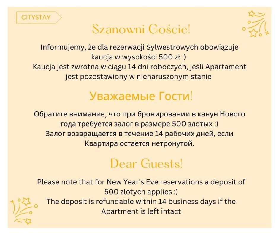 For monthly and longer stays, additional free cleaning of the apartment is provided during the reservation period - cleaning is obligatory and is intended to keep the apartment in good condition.W obiekcie obowiązuje zakaz organizowania wieczorów panieńskich, kawalerskich itp.