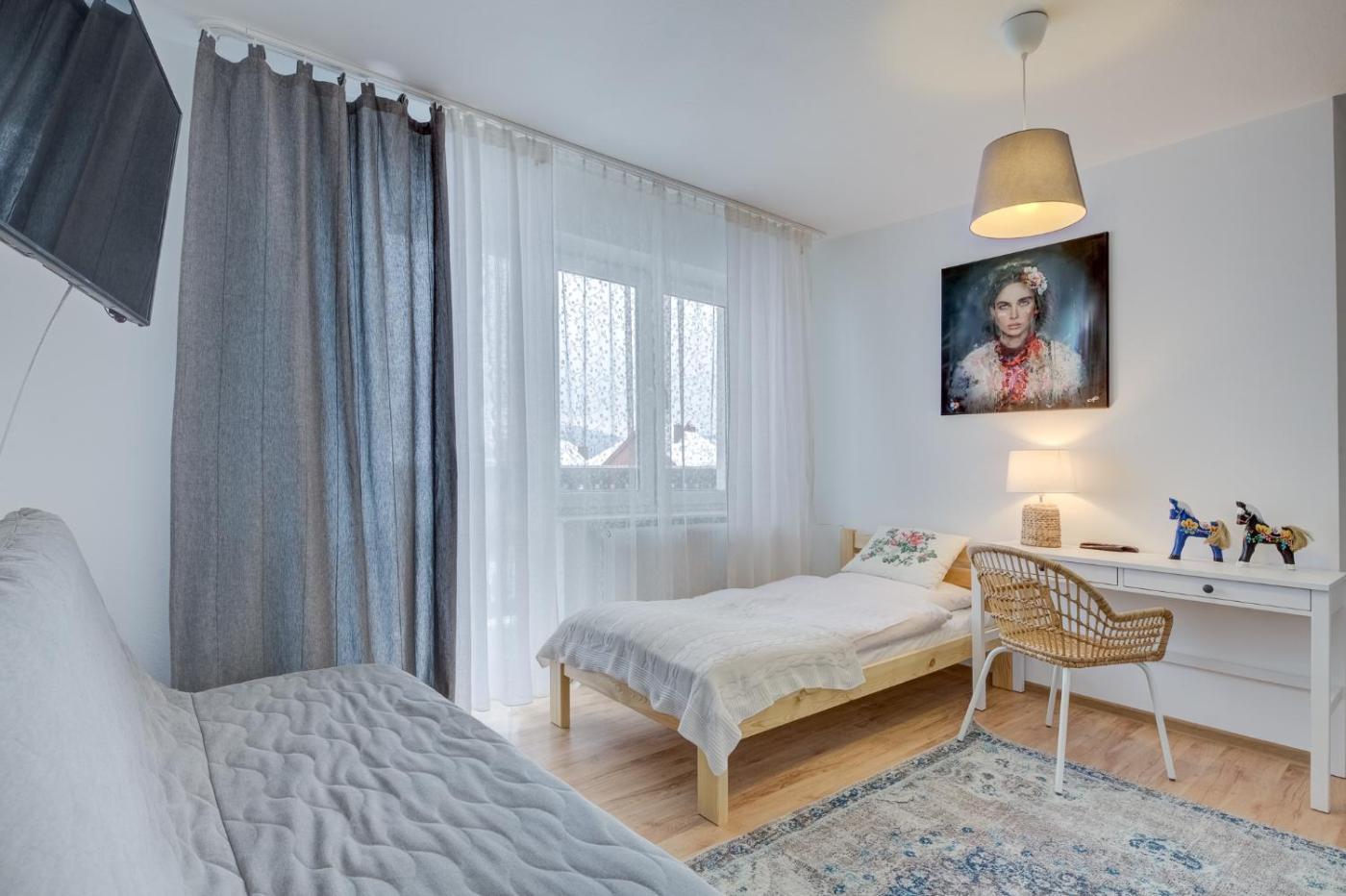 Apartament z 2 sypialniami. The apartment has 2 bedrooms, 2 bathrooms and a kitchen. The apartments kitchen is available for cooking and storing food. This apartment features a flat-screen TV. The unit has 3 beds. Apartament - 5 osobowy. Powierzchnia pokoju ok.: 60 mkw. ;