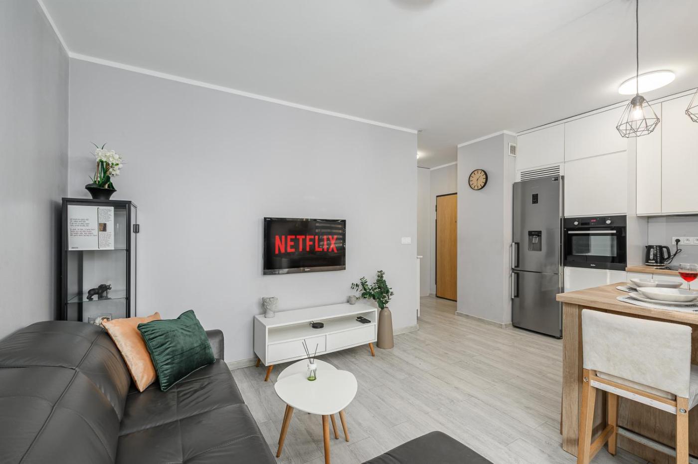 Apartament z 2 sypialniami. Boasting a private entrance, this apartment features 1 living room, 2 separate bedrooms and 1 bathroom with a bath and a hairdryer. The well-fitted kitchen has a stovetop, a refrigerator, a dishwasher and kitchenware. Featuring a terrace with city views, this apartment also features a washing machine and a flat-screen TV with streaming services. The unit has 3 beds. Apartament - 6 osobowy. Powierzchnia pokoju ok.: 60 mkw.